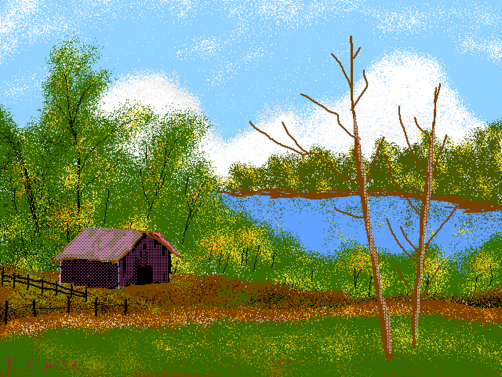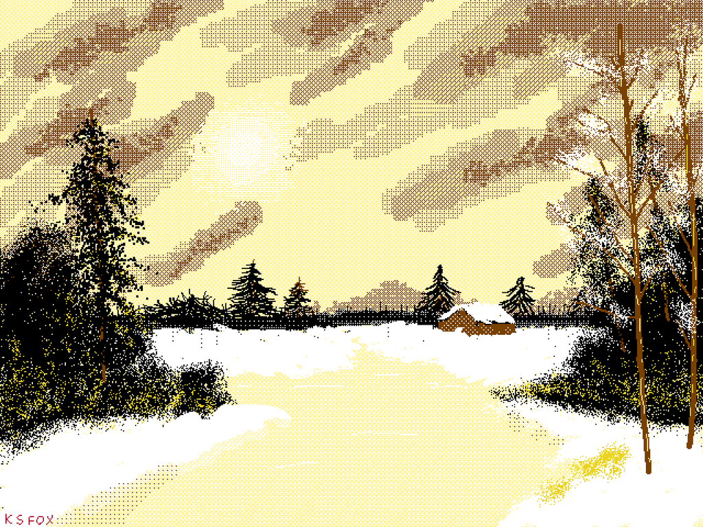 Decided to put on some Bob Ross and tried following along in Aseprite. Despite feeling like I had to rush to keep up, it was mildly amusing to do, and I was able to discover some neat techniques in Aseprite that I can use in the future.