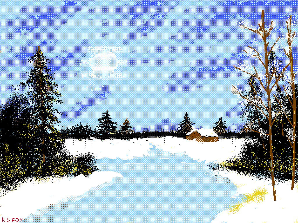 I changed the yellow sky to a blue sky. The original was yellow because that’s how Bob Ross did it in his video.